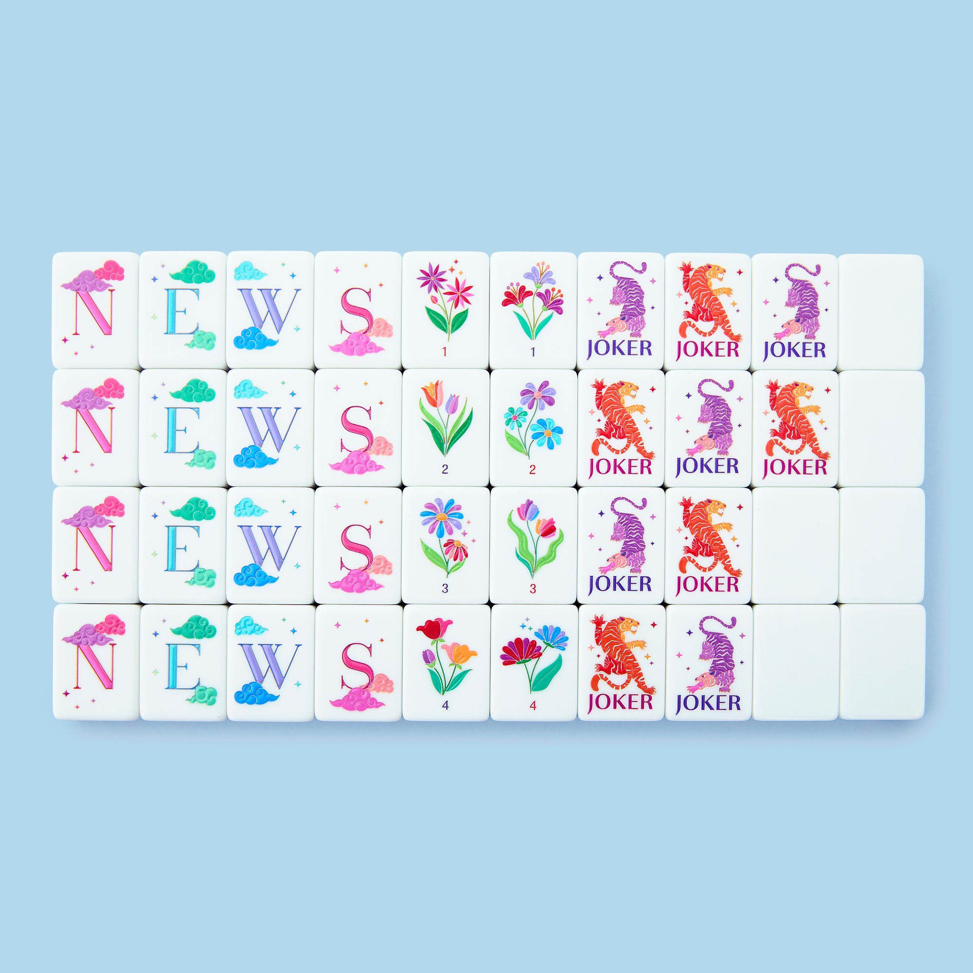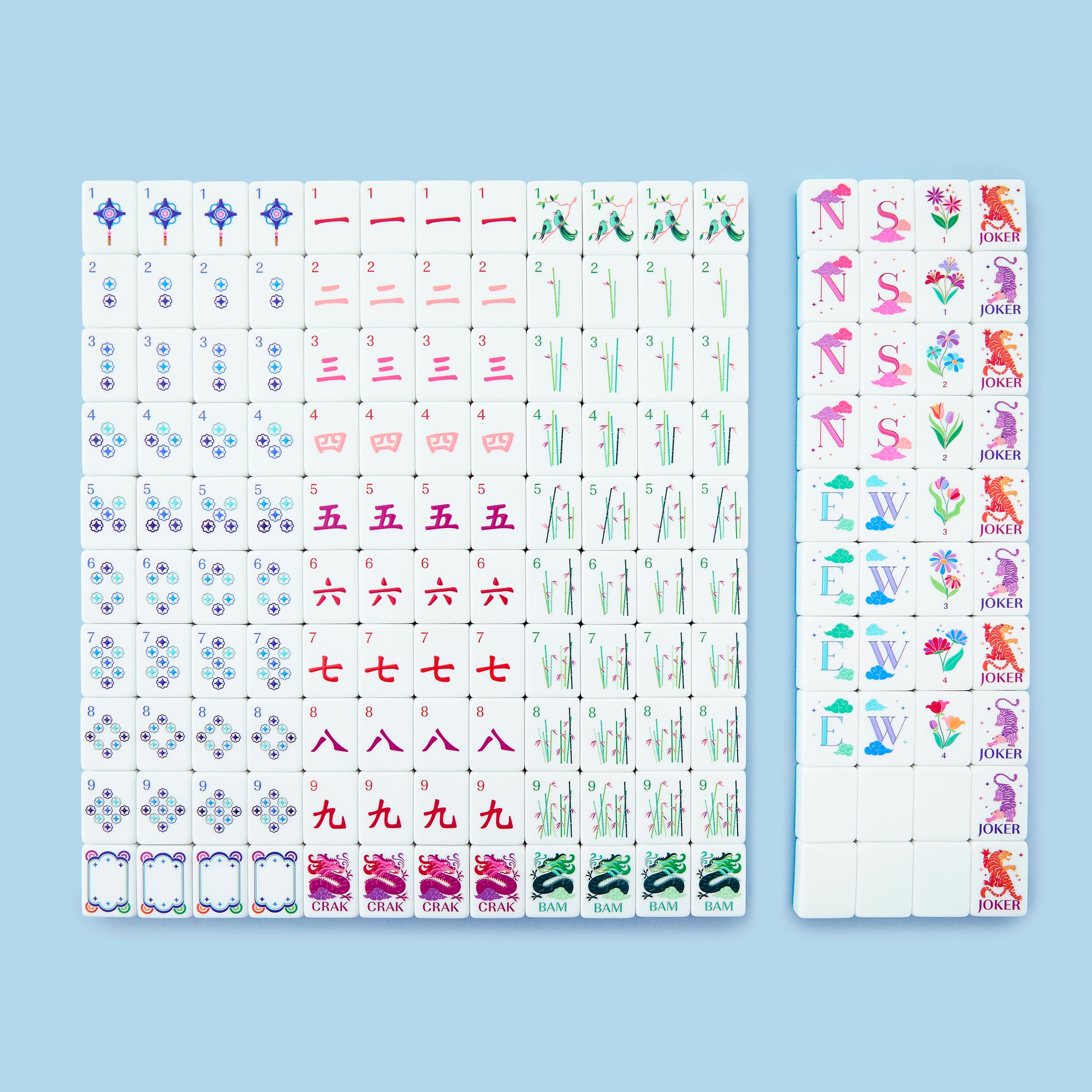 Celestial is perfect for beginners and seasoned players, offering a smooth introduction to the game without sacrificing style or quality. Mahjong Co.'s tiles are slightly smaller than traditional sets, making them lightweight and travel-friendly for effortless play anytime, anywhere. Each Celestial set includes 160 acrylic tiles with vibrant, durable designs that will keep your game shining for years. Plus, we've included a sleek and stylish tile bag to keep your set safe and organized.